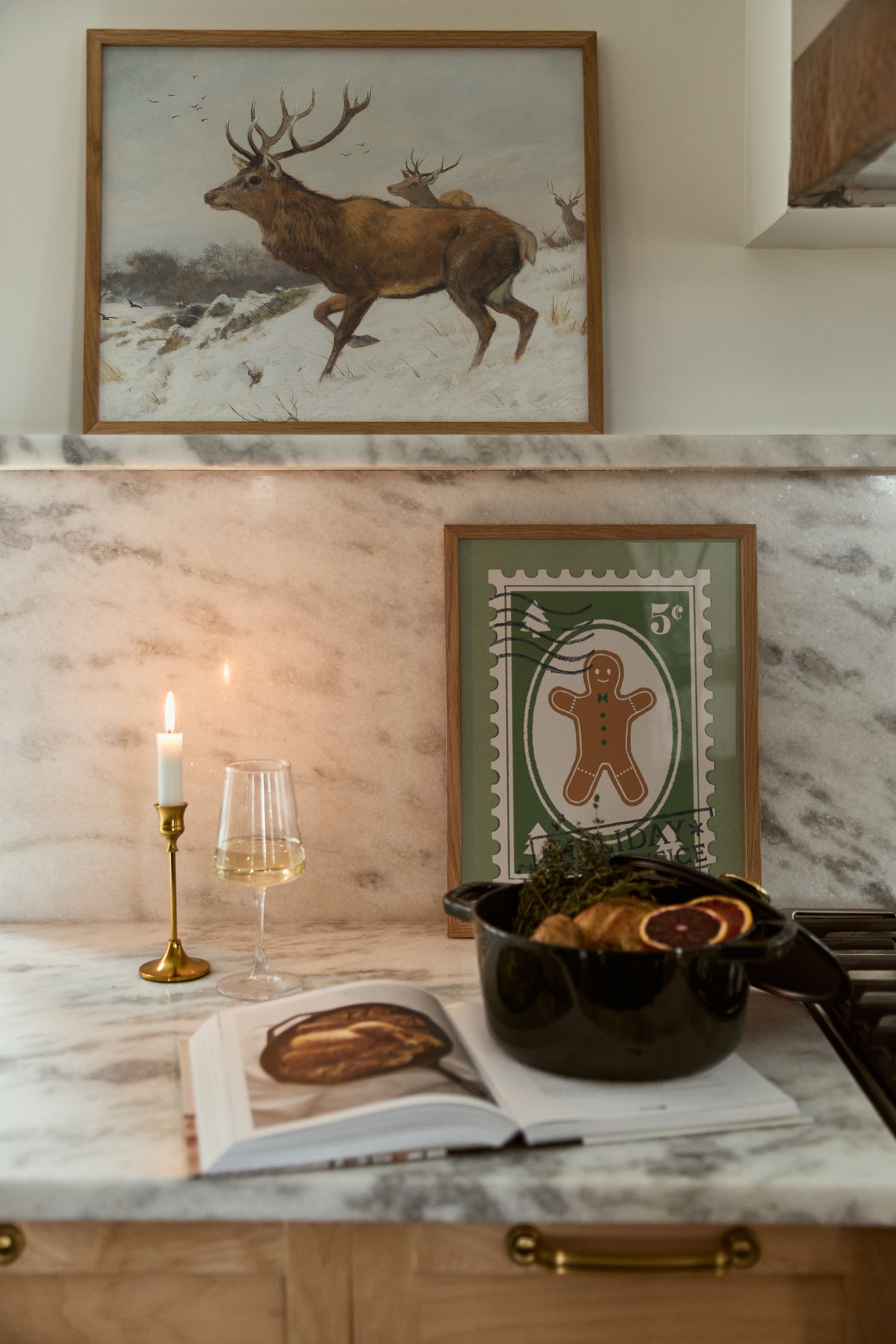 This artwork would be a great fit for a kitchen, especially during the holiday season, or a playful addition to a family room. Its lighthearted subject matter makes it suitable for spaces where joy and celebration are the focus.